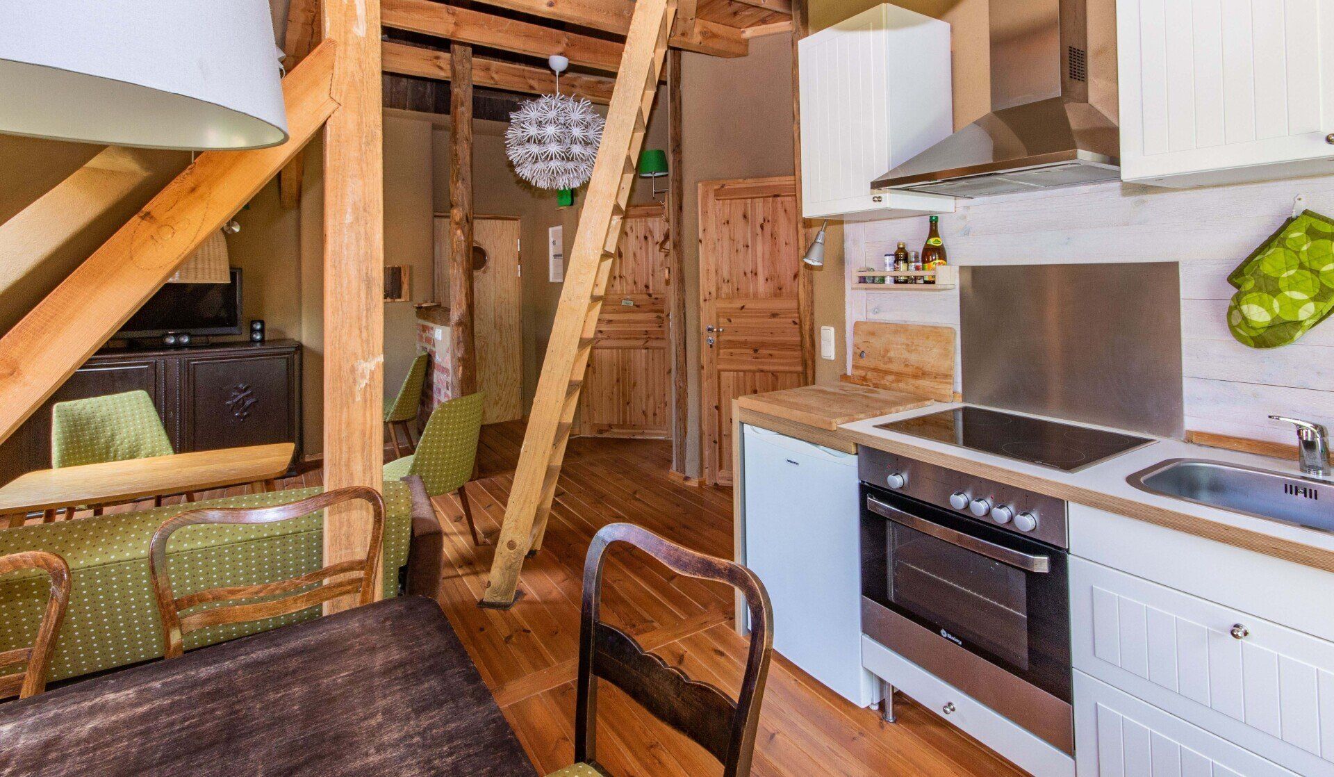 In der voll ausgestatteten Küche sind neben Backofen, Herd, Kühlschrank und Geschirrspüler alle notwendigen Utensilien von Korkenzieher bis zum Kochtopf vorhanden, sodass Sie nach Herzenslust mit den Zutaten aus der Region genußvolle Mahlzeiten zubereiten können.